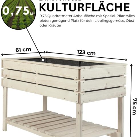 Onbest Premium Holzhochbeet mit Ablage & Innenvlies, 80cm hoch, 80cm lang