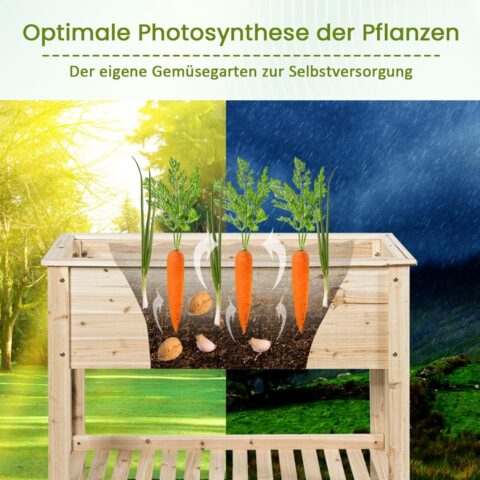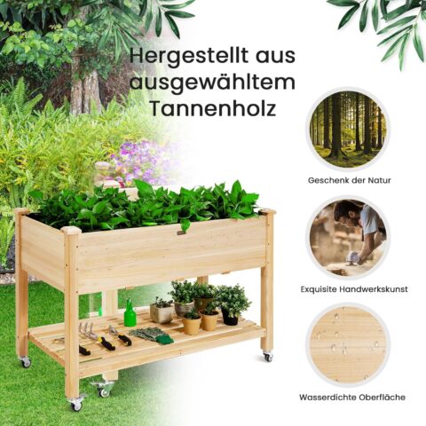 GOPLUS Hochbeet ohne Rollen, Gartenbeet mit Ablage & Abflusslöcher, Pflanzbeet aus Tannenholz für Garten & Terrasse, Natur (ohne Rollen, 92x41x81cm)