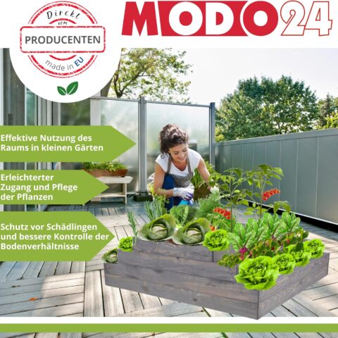 holz4home® Hochbeet inkl. Vlies-, Einlegevlies Naturholz Tanne Grauweiß | 80x37x78 cm I Hochwertiges Tannenholz I Ideal für den kleinen Garten, Terrasse oder Balkon