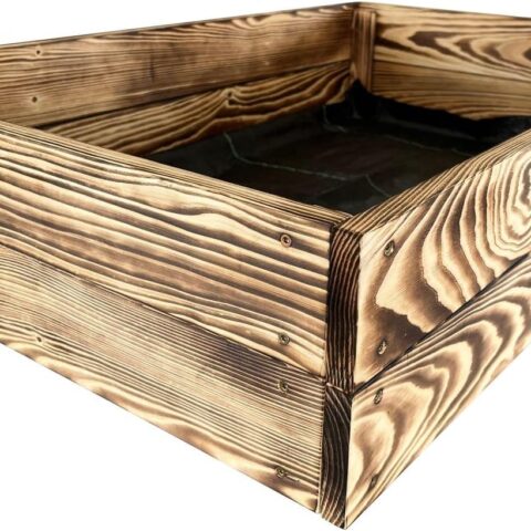 Lermowoood Hochbeet aus Holz 120x40x20 cm Geflammt – Pflanzkasten für Gemüse & Kräuter – mit Agrovließ – steckbar & stapelbar- Aussenbereich ideal für Garten, Balkon & Terrasse