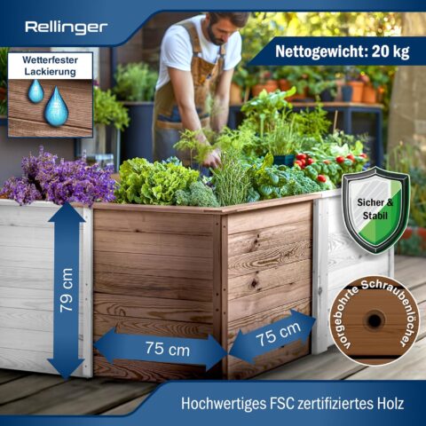RELLINGER® Hochbeet Connector Holz, wetterfeste Lackierung FSC® zertifiziertem Holz, Farbe: Braun