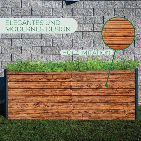STREND PRO Hochbeet Metall 200x100x77 cm (LxBxH) Holz Imitation | Pflanzkasten Holz Effekt | Blumenkasten Holz Effekt | Garten Pflanzkasten Hoch | Gemüsebeet | Gartenbeet | Hochbeet Balkon Pflanzbeet
