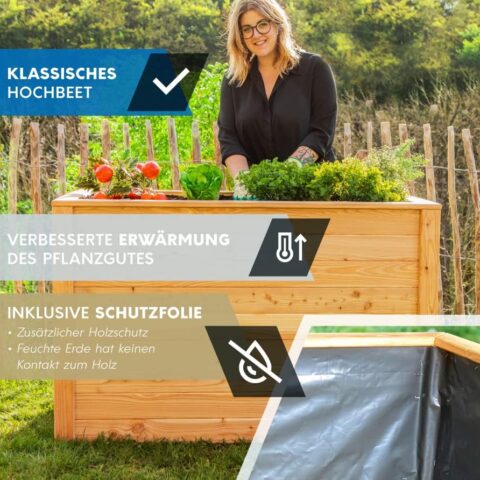 tectake® Hochbeet aus Holz mit Ablagefach, für Garten, Balkon und Terrasse, Innenleben mit Pflanzfolie ausgestattet, witterungsbeständig, 119 x 53 x 90 cm