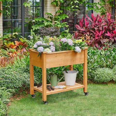 Yaheetech Hochbeet aus Holz Pflanzkasten Blumenbett, Frühbeet Bausatz für Gemüse, Kräuterbeet für Garten Balkon, mit Fußkappen