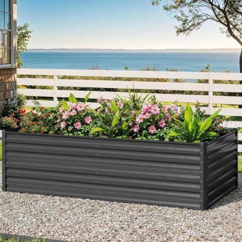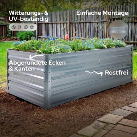 Grand patio Hochbeet Garten, Wetterfest, Metall Pflanzbeet mit Entwässerungslöcher, Blumenkasten für Outdoor, Balkon (100X38X91CM)