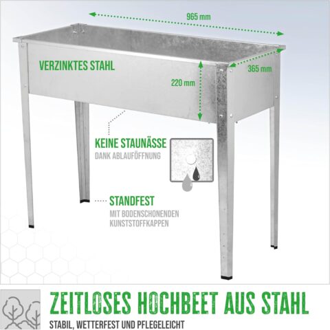 Güde 94773 Hochbeet GHB 80 V (Korpus aus verzinktem Stahl, Ablauföffnung für überschüssiges Wasser, 77 l Füllvolumen)