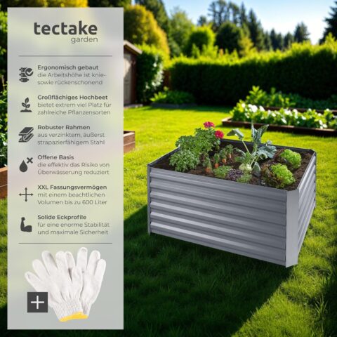 tectake® Hochbeet Metall, Hochbeete-Kit für Beet, Garten und Terrasse, 120 x 90 x 57 cm, als Pflanzkasten, Kräuterbeet, Frühbeet, Gemüsebeet oder Pflanzenbeet, zur Anzucht oder als Blumenkasten