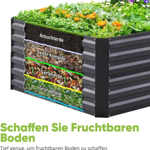 ok-Living Hochbeet Kräuterbeet Gemüsebeet rechteckig 180x90x60cm (LxBxH) Silber Pflanzkasten Frühbeet Aufzucht Beet Garten
