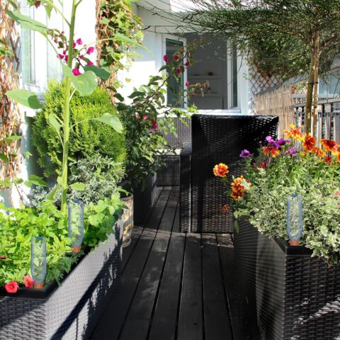 Relaxdays Tonkegel Bewässerung, Gießkegel 10er Set, 1 l Wein- & PET-Flaschen, Zimmerpflanzen & Balkonkästen, terrakotta