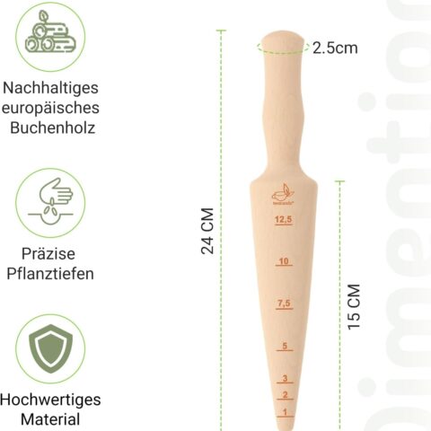 Teemando® Marken-Pflanzholz mit Scala aus unbehandeltem Buchenholz, 24,5 cm lang