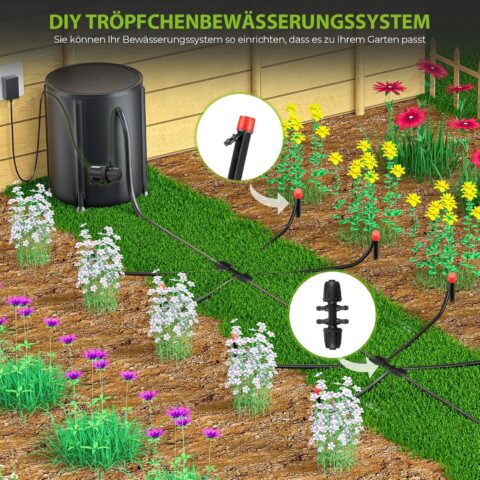 Bewässerungssystem, Automatische Bewässerung mit 25-Watt Wasserpumpe & 50-Liter Eimer, Niedrigwassersensor Bewässerungssystem für Garten Balkon Zimmerpflanzen Tröpfchenbewässerung