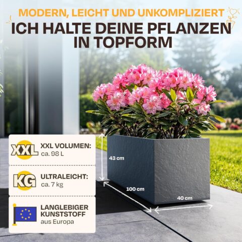 Ondis24 Pflanzkübel Kunststoff 100cm mit Wasserspeicher, Winterfest anthrazit