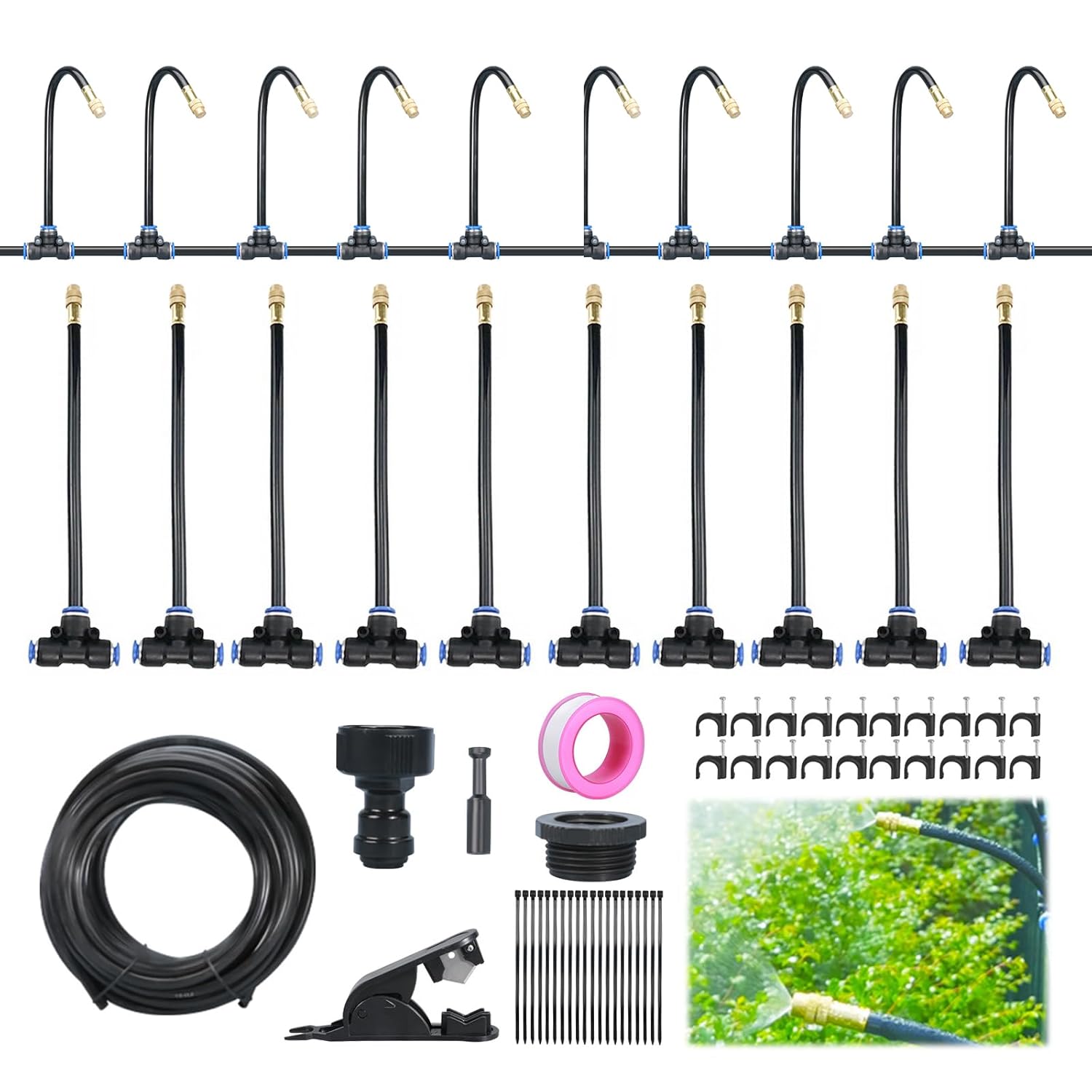 💧【 Kit-Konfiguration Komplett】 Der vollständige Satz verfügt über einen 10-Meter-Nebelschlauch, einen Adapter, 10 Messingdüsen, 10 Mistverbessere, ein Bündel mit Reißverschluss, 1 Endstopfen und einen Rohrschneider. Alle Zubehörteile werden sorgfältig mit den Anforderungen der Multi-Knoten-Erweiterung, kostenlosen Schneiden und stabiler Installation übereinstimmen, ohne dass zusätzliche Einkäufe erforderlich sind.