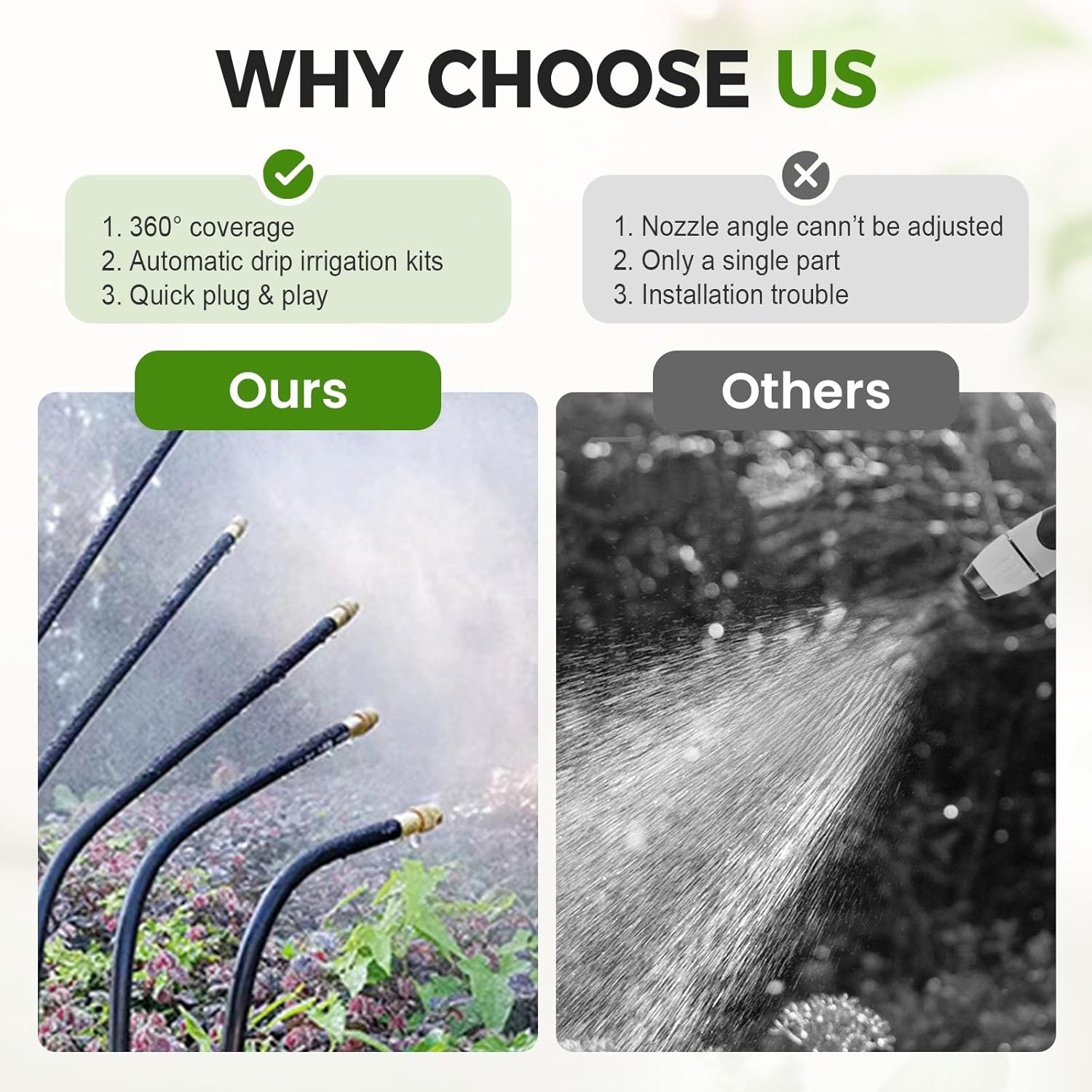 💧【Wid Weitgehend Anwendbar】Das automatische Bewässerungsset eignet sich für jeden Ort, den Sie wünschen, wie Bewässerung von Schwimmbadbalkühlanlagen, Gemüsegarten, Rasenzerstäubung, Nebelkühlung, Entstaubung, Gartenbefeuchtung.