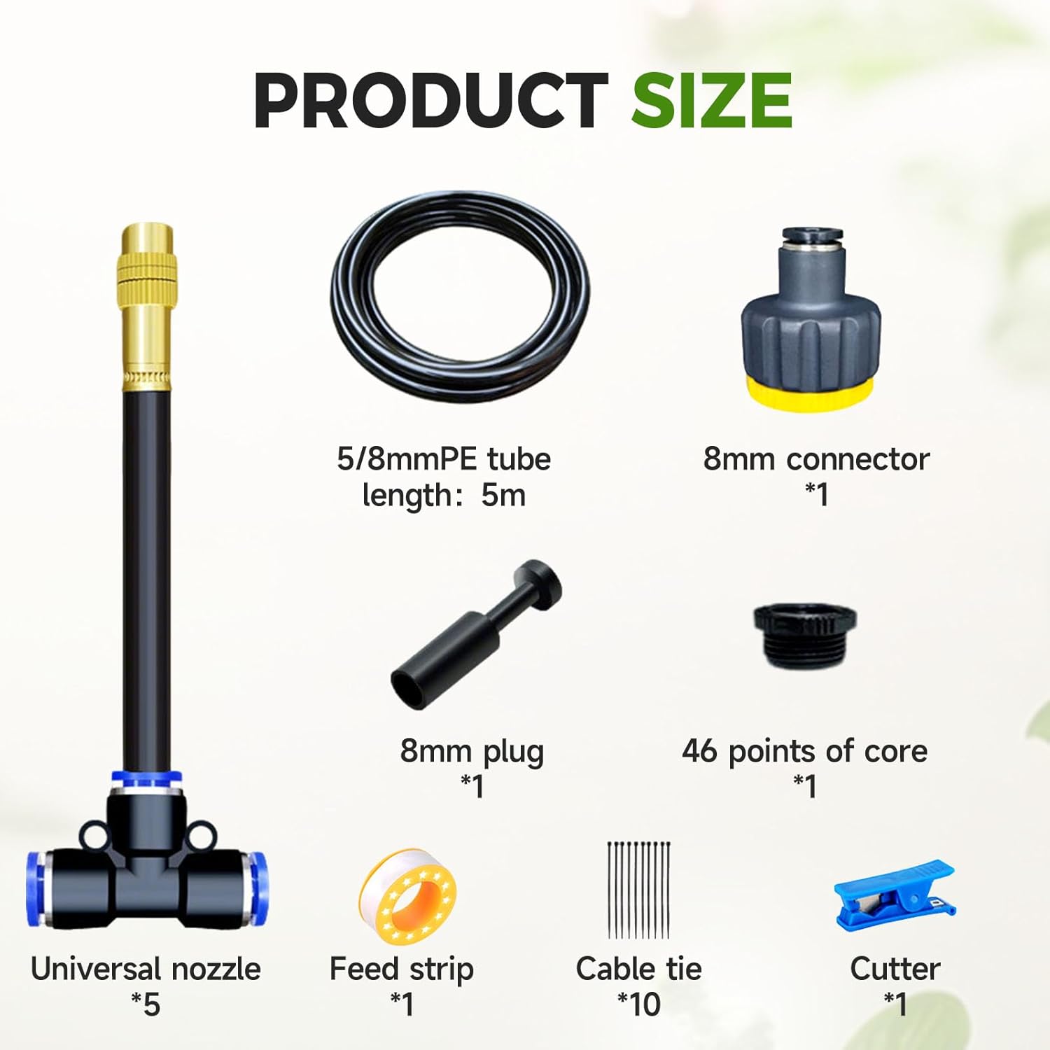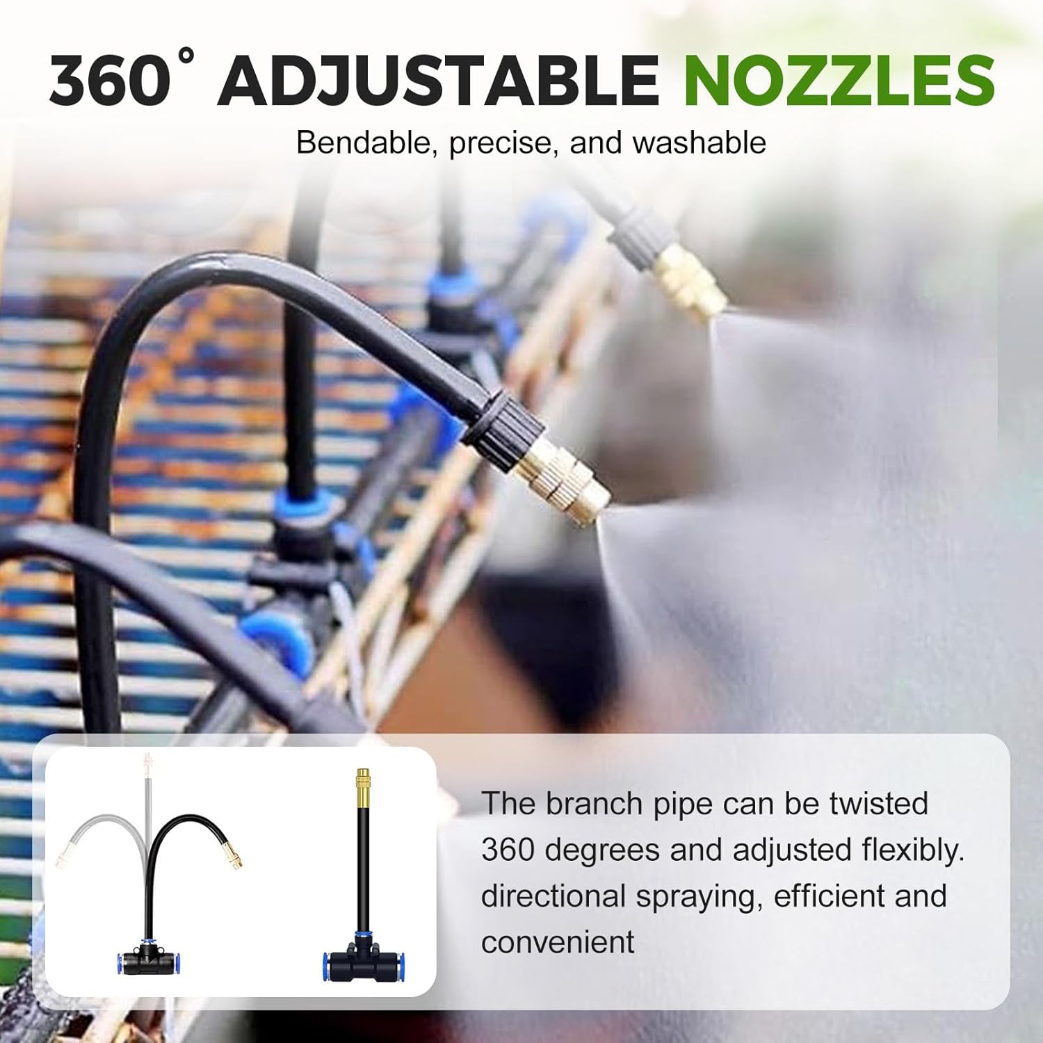 💧【Präzise Durchflussregelung】 Das Bewässerungssystem Gewächshaus ist eine verstellbare Messingdüse. Je lockerer der Knopf, desto feiner der Nebel. Wechseln Sie einfach zwischen sanftem Sprühnebel für Setzlinge und effizienter Rasenbewässerung und reduzieren Sie so die Wasserverschwendung mit nur einem Knopfdruck.