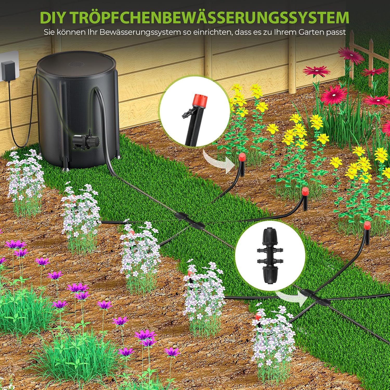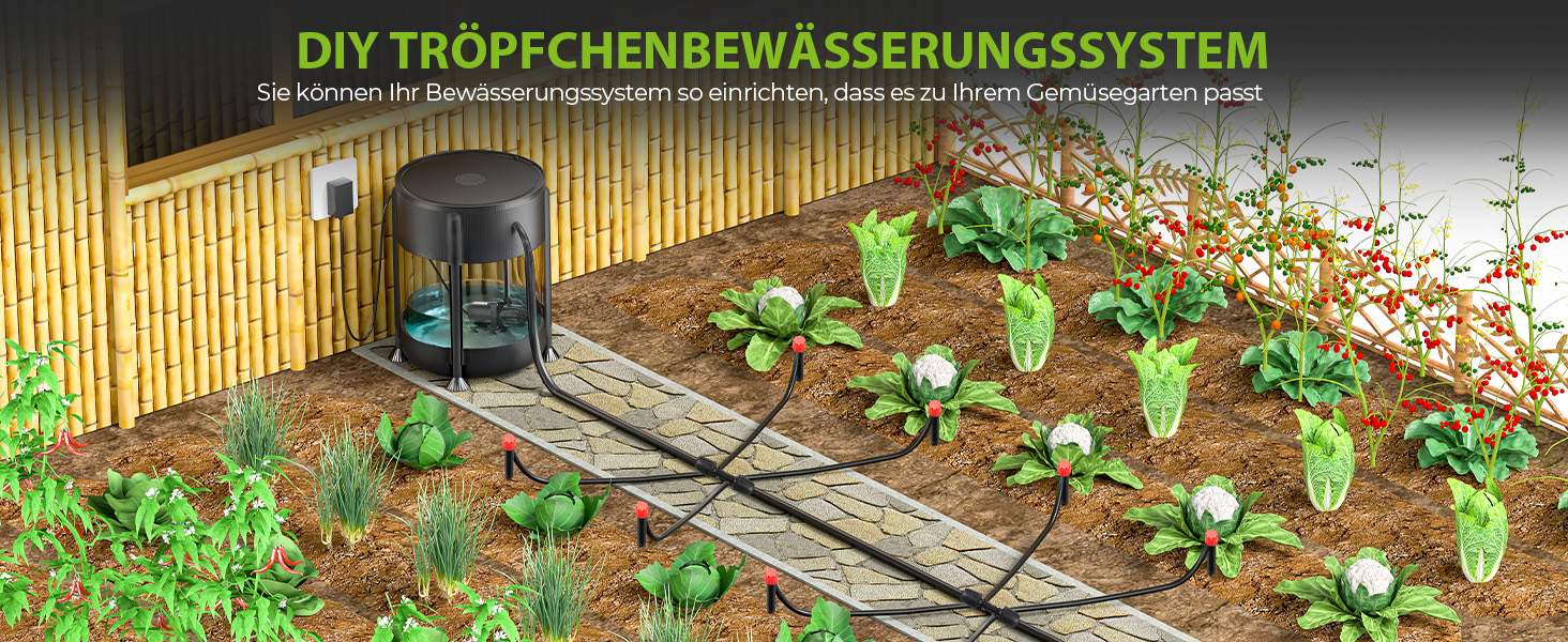 【Wassereinsparung】: Automatisches Tropfbewässerungssystem liefert Wasser direkt an die Pflanzenwurzeln und reduziert Verschwendung und Verdunstung. Präzise Steuerung der Wasserversorgung für optimiertes Pflanzenwachstum und verbesserte Erträge und Qualität