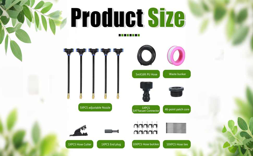 Das tröpfchenbewässerung-Set besteht aus einem 5/10/15 Meter langen Sprühschlauch, einer um 360 Grad biegbaren Messingdüse, einem T-Stück, einem Hahnadapter, einem Schlauchschneider, einem Stecker mit Band und einem hochwertigen T-Stück. Das Tropfbewässerungssystem ist nicht nur schön, sondern auch oxidations- und korrosionsbeständig, robust und langlebig.
