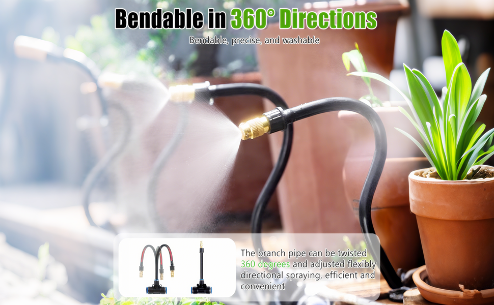 360°-EINSTELLUNG VON ALLEN SEITEN: Unsere bewässerungssystem balkon Sprühdüsen verfügen über einen flexiblen Metallschlauch, der sich frei einstellen und fixieren lässt. Durch die Befestigung an Pfosten oder Zäunen eignen sie sich problemlos für komplexes Gelände wie Blumenbeete, Gemüsegärten und Ecken und verhindern tote Winkel.