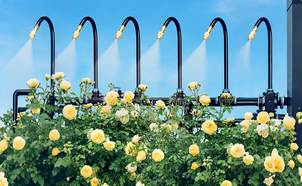 bewässerungssystem gewächshaus, einfach zu installieren, kein Graben oder Verlegen von Rohren erforderlich. Die Selbstbedienungs-Gartenbewässerungssprinkler machen die Installation zum Kinderspiel und sorgen für ein wunderbares Kühl- oder Gartenbewässerungssystem.