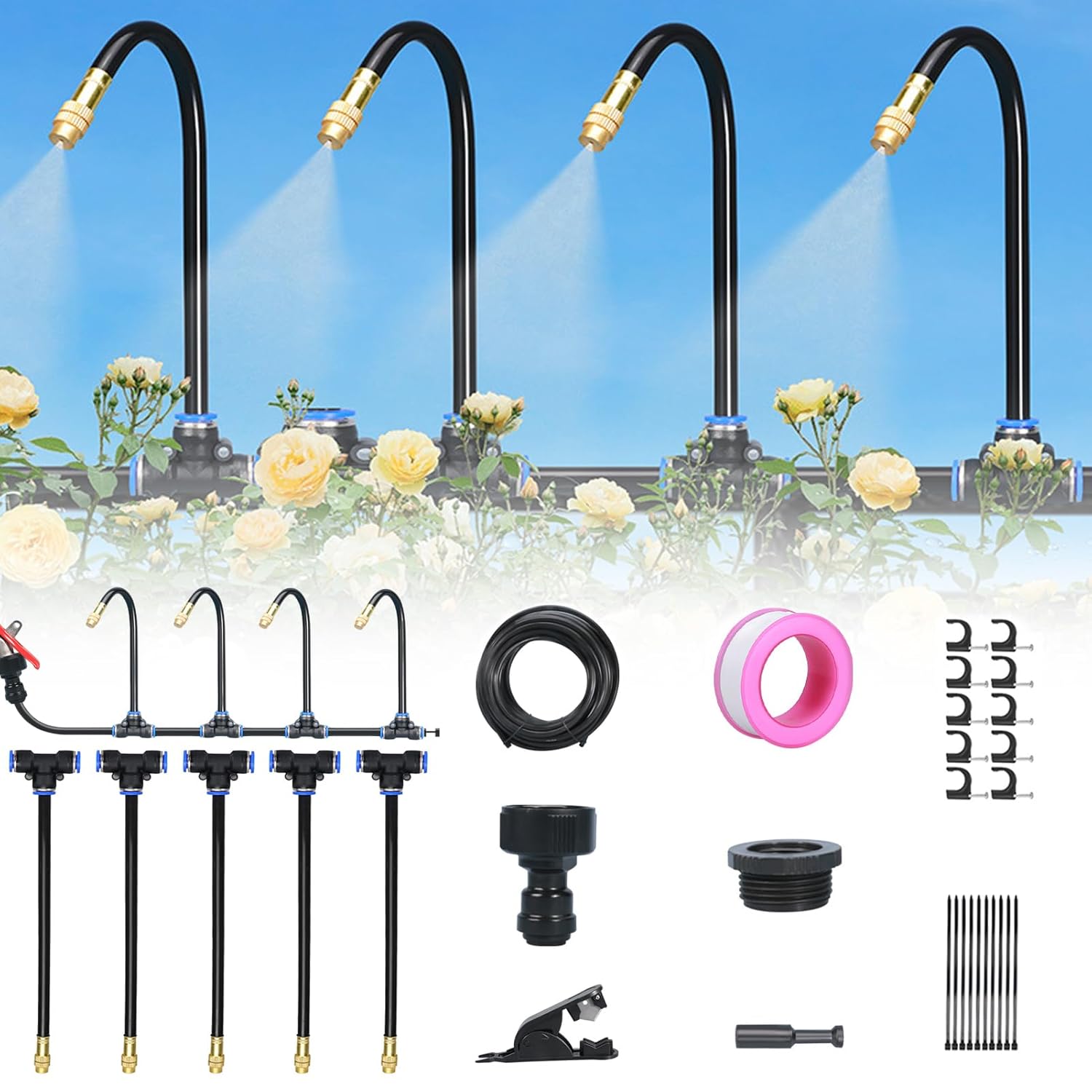 bewässerungssystem gewächshaus, einfach zu installieren, kein Graben oder Verlegen von Rohren erforderlich. Die Selbstbedienungs-Gartenbewässerungssprinkler machen die Installation zum Kinderspiel und sorgen für ein wunderbares Kühl- oder Gartenbewässerungssystem.