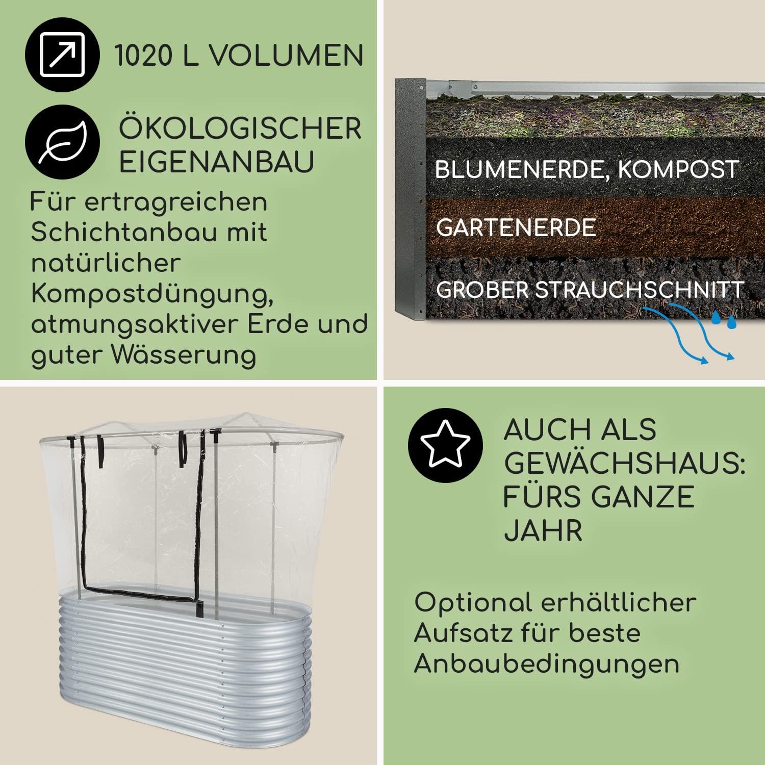 blumfeldt Hochbeet aus Metall, Wetterfestes Stahlblech für Balkon & Garten, Rostfreies Oval, Freistehende Hochbeete 200x80x100 cm, 1257L Pflanzkübel Groß für Blumen, Obst, Gemüse