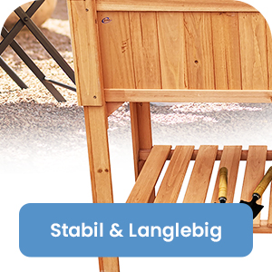 Für diesen Preis ein super Hochbeet, lies sich gut zusammenbauen. Die Aufbauanleitung war leicht, es hat einen guten und sicheren Stand, will es für Kräuter verwenden. Habe es allerdings nicht wie beschrieben nur mit dem Schraubenzieher, sondern mit dem Akkuschrauber zusammengebaut und anschließend mit Klarlack gestrichen