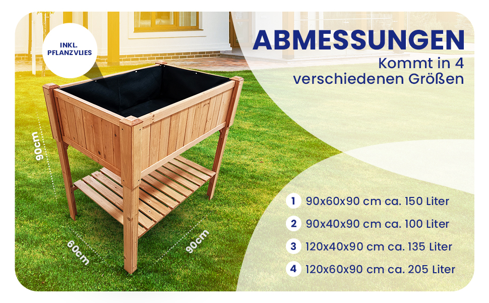 Vielseitig bepflanzbares Hochbeet aus Holz inklusive Pflanzvlies für Garten, Terrasse und Balkon, ohne Deko-Artikel