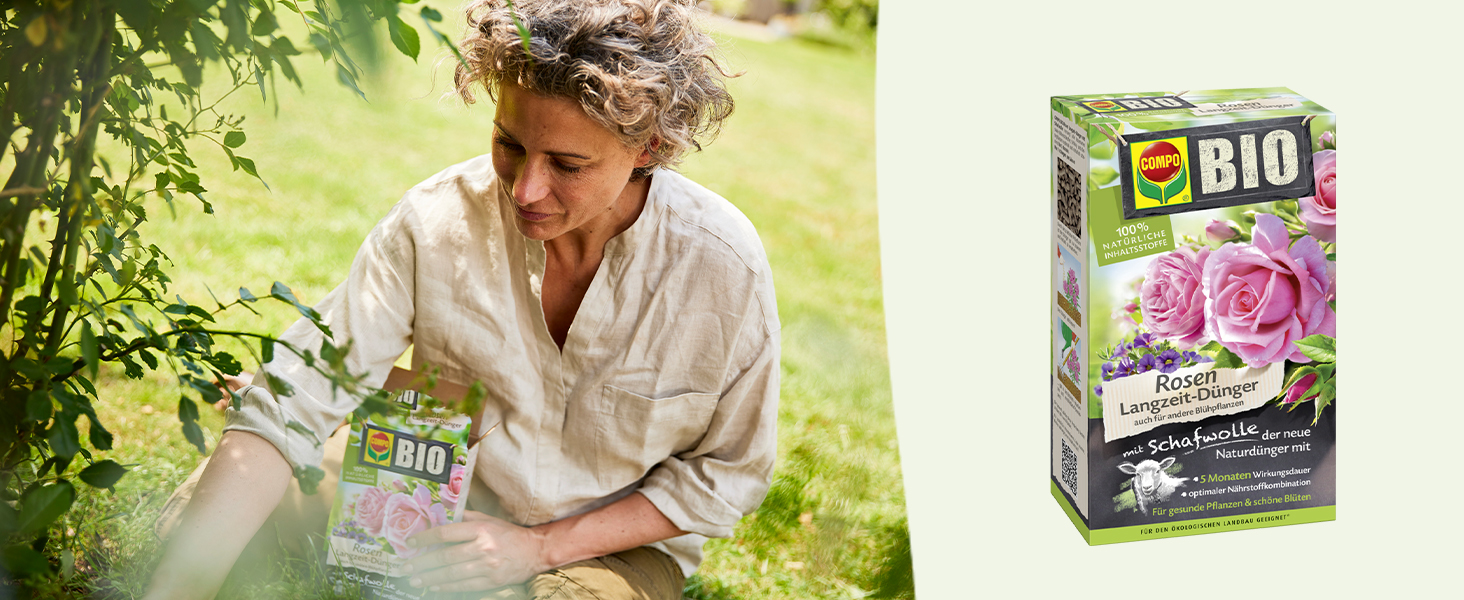 COMPO Bio Dünger mit Schafwolle COMPO BIO Rosen Langzeit-Dünger mit SchafwolleOrganischer Naturdünger mit Schafwolle für Rosen und andere Blühpflanzen
