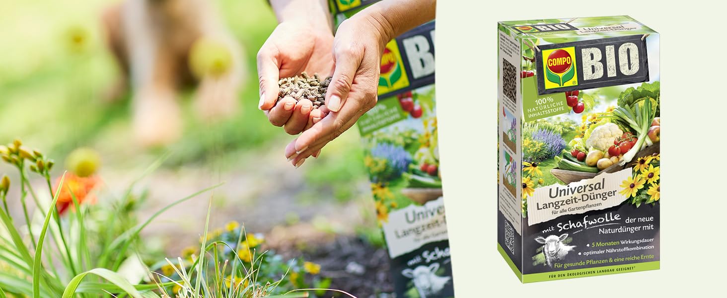 COMPO BIO Universal Langzeit-Dünger mit SchafwolleOrganischer Universal Langzeit-Dünger mit Schafwolle für alle Gartenpflanzen, Obst und Gemüse