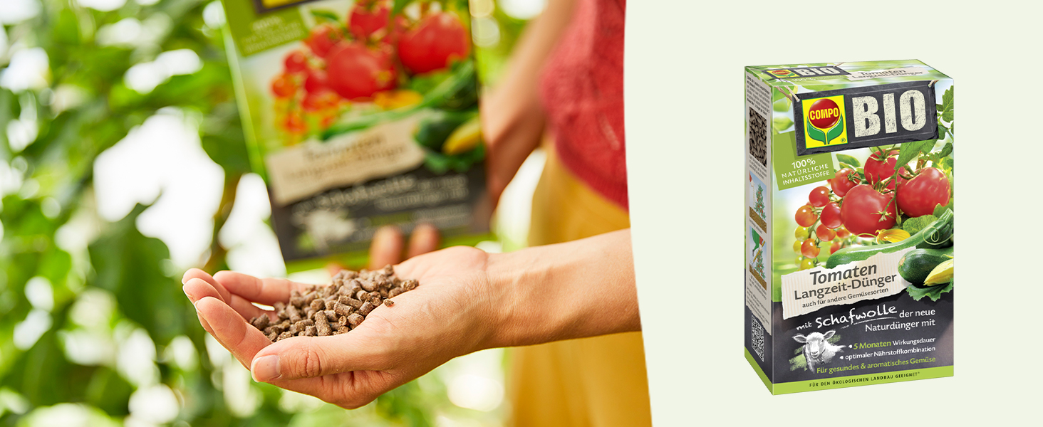 COMPO BIO Tomaten Langzeit-Dünger mit SchafwolleOrganischer Naturdünger mit Schafwolle für alle Tomatenarten sowie andere Gemüsepflanzen