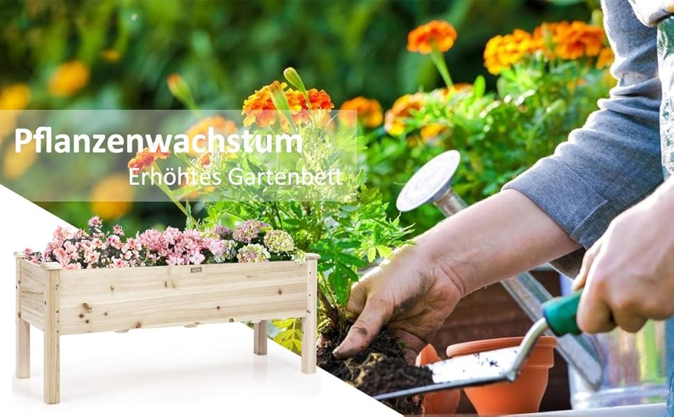 【Einfache Montage】 Die detaillierten Montageschritte helfen Ihnen, dieses Hochbeet so schnell wie möglich fertigzustellen. Alle Werkzeuge und Teile sind bereits für Sie vorbereitet. Dank der großartigen Verarbeitung ist die Oberfläche glatt und gratfrei.