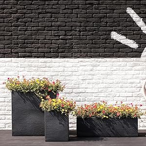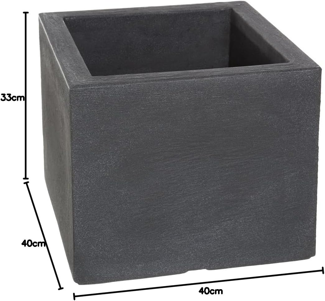 Der Blumenkübel überzeugt mit seinem modernen Cube-Deign in atemberaubender Schieferoptik die das Gefäß sehr hochwertig wirken lässt