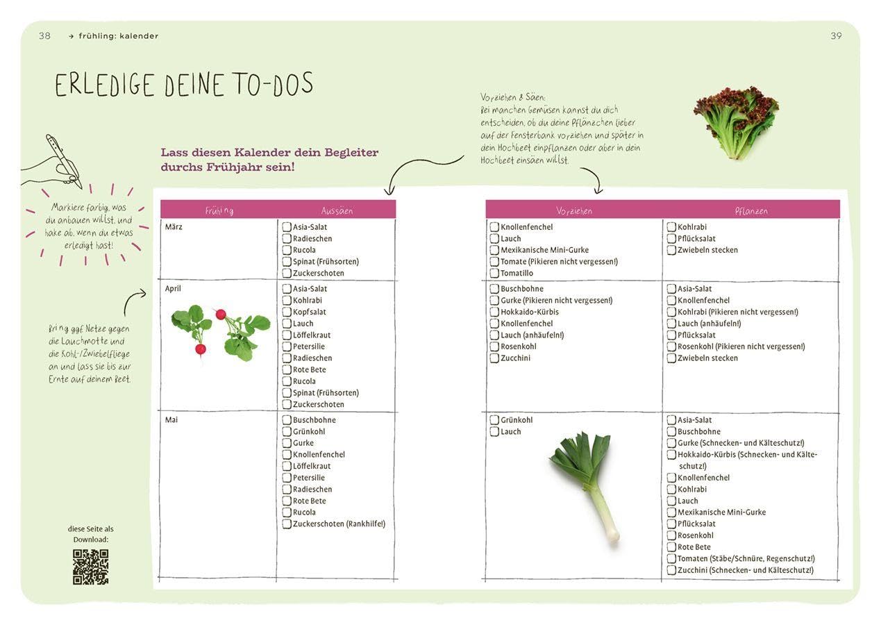 Viele Ideen, aber kein Plan? Für einen praktischen Einstieg in die bunte Welt der Hochbeete ist dieser Guide der perfekte Begleiter! Entdecke, wie du dein eigenes Hochbeet baust, es klug bepflanzt und eine fette Ernte einfährst. Vier Beetpläne zum Nachpflanzen zeigen dir wie´s geht. Lerne alle Tricks und Kniffe, um auch im Winter knackiges Gemüse anzubauen, Nützlingen ein Zuhause zu geben und lästige, tierische Mitesser loszuwerden. Über drei Level kannst du das eigene Wissen vertiefen und zum Hochbeet-Profi aufsteigen! Anbau- & Erntekalender, Einkaufslisten, geniale DIY-Projekte und digitale Extras animieren, gleich aktiv zu werden und machen Lust auf mehr. Leg’ los und starte die Hochbeet-Revolution!