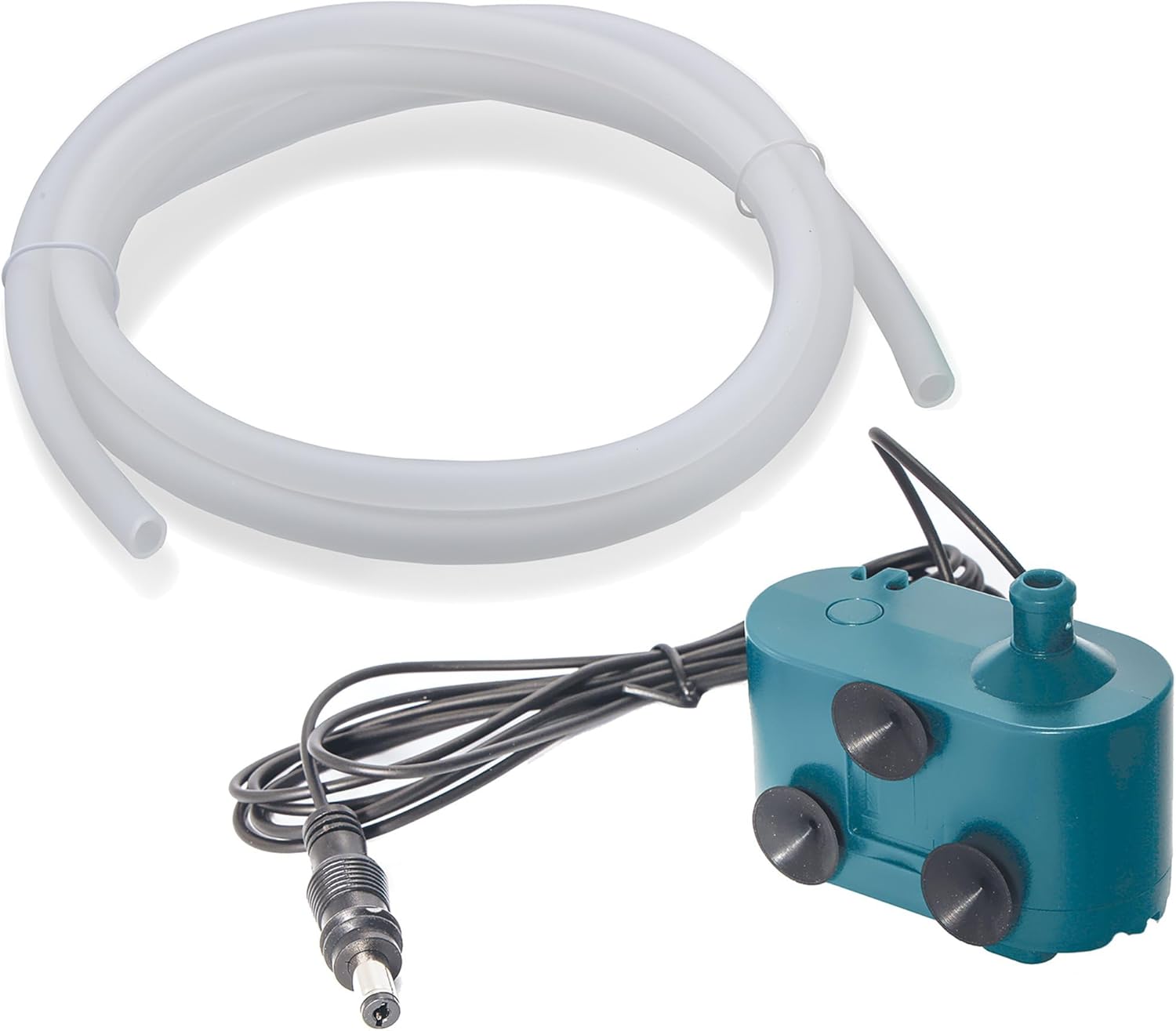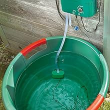 Angesaugt wird das Wasser durch einen Filter am Ende des Zulaufschlauchs. Hängen Sie die Pumpe einfach in Ihr Wasserfass, einen Eimer oder einen natürlichen Zulauf mit klarem Wasser.