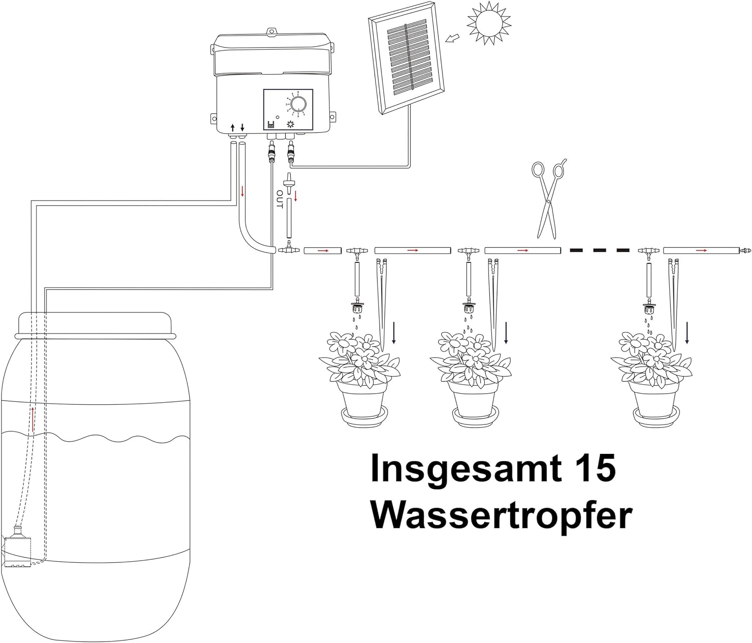 Ich bin begeistert! Zusammenbau ist gut erklärt, ich musste Schlauch nachkaufen und wie bei den anderen auch, funktionieren die Haftteile im Wasserfass nicht. Wir haben eine schwere Schraube drangehängt. Es gibt trotzdem 5 Sterne weil es so super funktioniert. Ich bewässere 5 Kübelpflanzen seit 2 Wochen damit, Zeit ist auf 2 Minuten eingestellt und ich brauche nichts zu korrigieren. So können wir beruhigt in den Urlaub fahren 👍👍