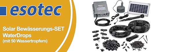 Esotec Solar Bewässerungscomputer Waterdrops Professional, Bewässerungssystem, Tröpfchenbewässerung, 50 Tropfer, automatische Bewässerung Hochbeet Gewächshaus Garten Balkon 101120