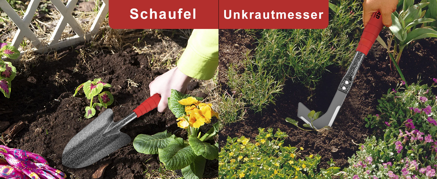 🌱Komplette funktionelle Werkzeuge: Die Gartengeräte perfekt für eine Vielzahl von Aufgaben wie Graben, Jäten, Lockerung Boden, Transplantation und vieles mehr.