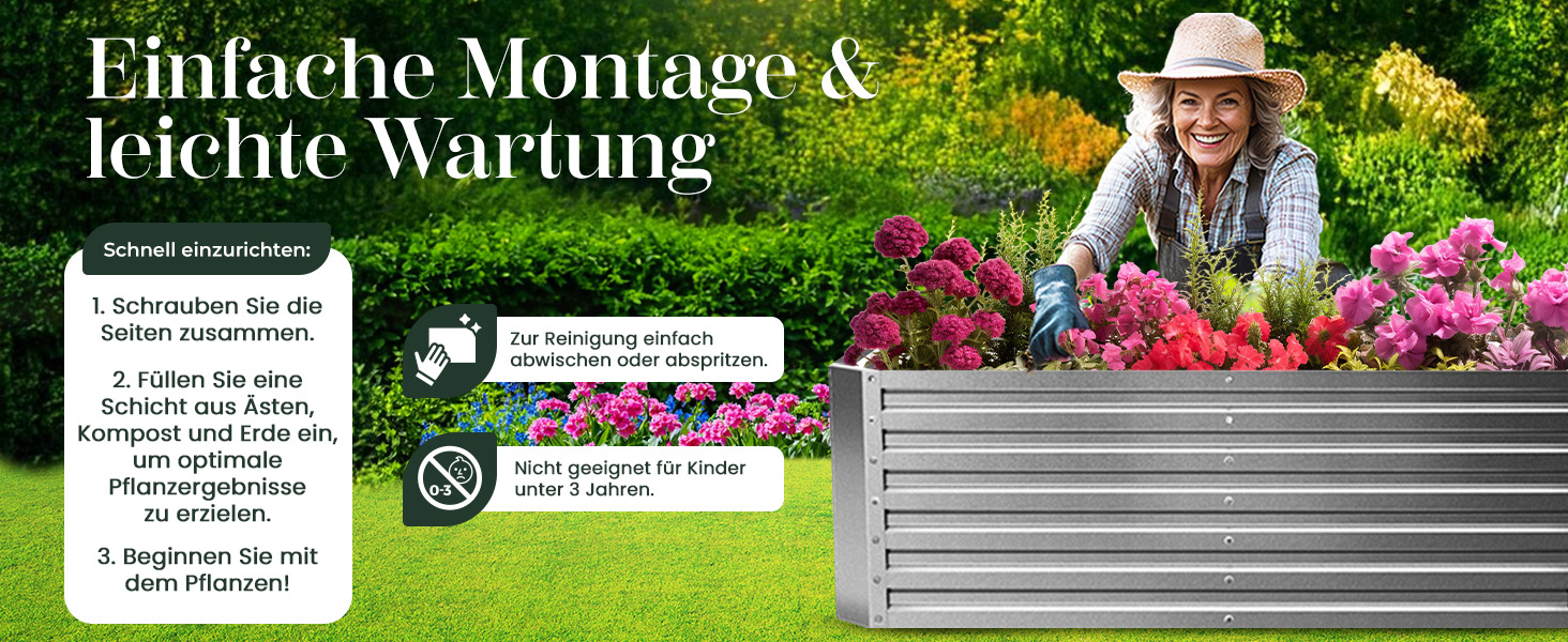 🎯 Vielseitig einsetzbar – Perfekt als Gemüsebeet, Kräuterhochbeet oder dekoratives Pflanzbeet im Garten, auf Terrasse oder Balkon.