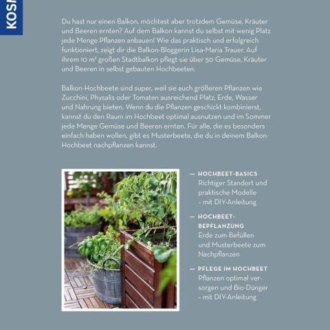 Ein durch die vielen Photos und das gekonnte Layout anschaulicher und preisgekrönter Ratgeber, auch zum Verschenken. Das Kapitel zum Bau eines Hochbeetes aus den unterschiedlichsten Materialien und die Integration in eine harmonische Gartengestaltung gerät anschaulich und enthält wertvolle Tipps. Hervorzuheben ist das umfangreiche Kapitel zu den verschiedensten Gemüsepflanzen und ihre jeweiligen Anforderungen an die Kultur. Auch wenn man den doch nicht zu unterschätzenden Aufwand zum Bau eines eigenen Hochbeetes (noch) scheut, ich weiß, wovon ich spreche, macht das Buch doch Appetit, es früher oder später mal selbst zu versuchen. Und dazu ist es nie zu spät, denn jede Jahreszeit ist geeignet!