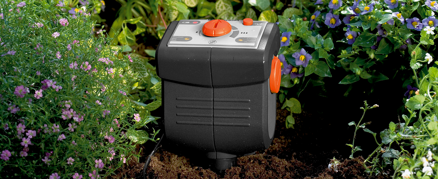 Einsetzbar mit FeuchtesensorBei Anschluss eines GARDENA Bodenfeuchtesensors wird die automatische Bewässerung in Abhängigkeit der Bodenfeuchte unterbrochen.