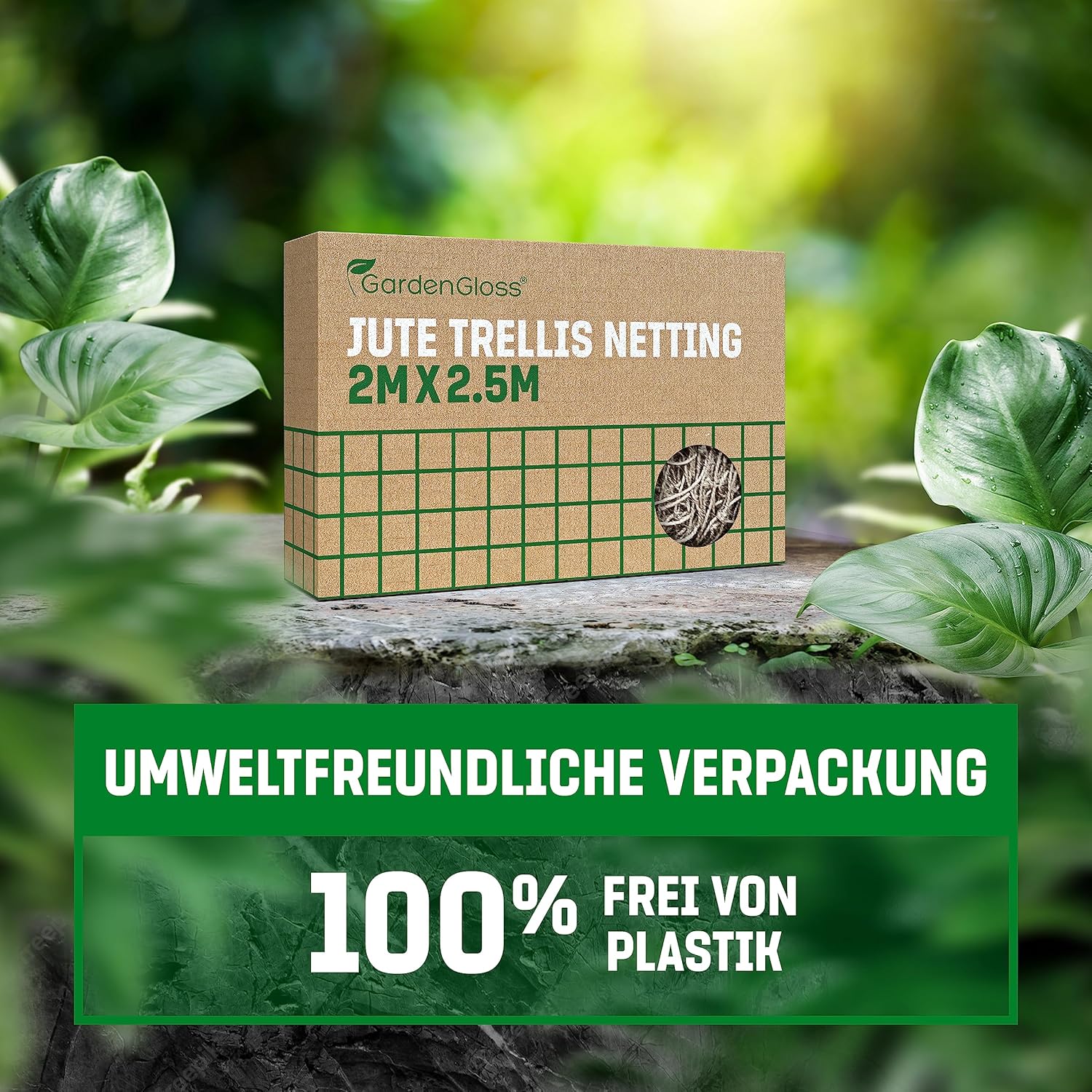 GardenGloss Jute Ranknetz Nachhaltig 100% Biologisch Abbaubar – Mit grosser Maschenweite für Gurken, Tomaten und Anderen Gemüsepflanzen – Rankhilfen für Kletterpflanzen