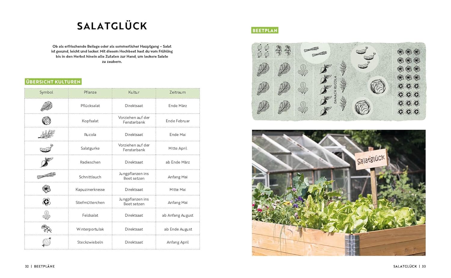 Wer schnell und einfach wissen will, wie das eigene Hochbeet ertragreich bewirtschaftet werden kann, wird mit den Anleitungen und Beetideen der Stadtgärtner bestens versorgt. Auf 64 Seiten werden geballtes Hochbeet-Wissen sowie Gartenpraxis versammelt. Von Bau und Anlage des Hochbeets bis hin zu Aussaat und Pflege wird alles anschaulich erklärt. Genießer können sich fünf Beete zu Themen wie “Naschbeet”, “Salatglück” oder “Grillmeister” anlegen, die das ganze Jahr frische Produkte liefern.