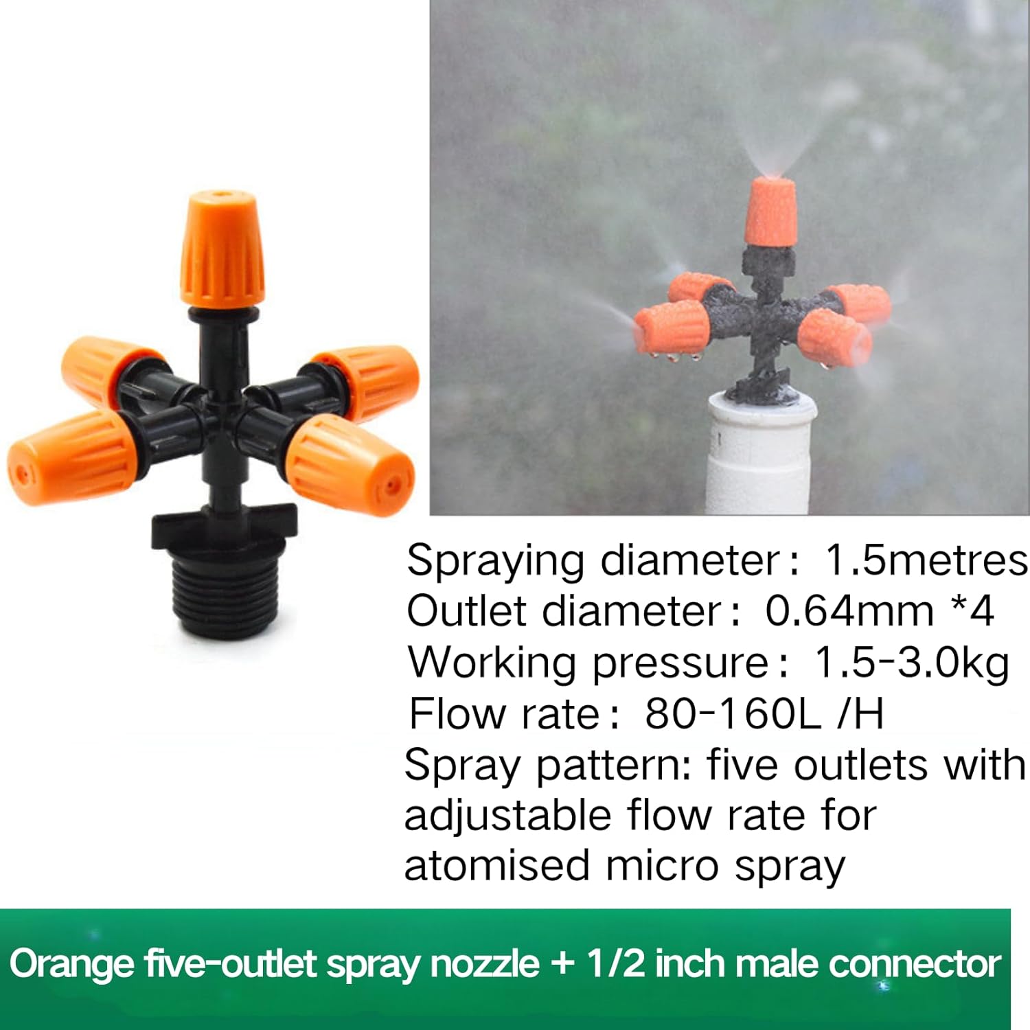 Einstellbarer Bewässerungsmeister: Fünf Ausgänge bieten ein vollständigeres Spray, das einen größeren Bereich abdeckt. Der Wasserfluss jeder Mikronebeldüse kann individuell zum Schließen eingestellt werden. Drehen Sie, um Sprühdruck und Durchmesser zu steuern, ist es sehr bequem, den Gießabstand einzustellen.