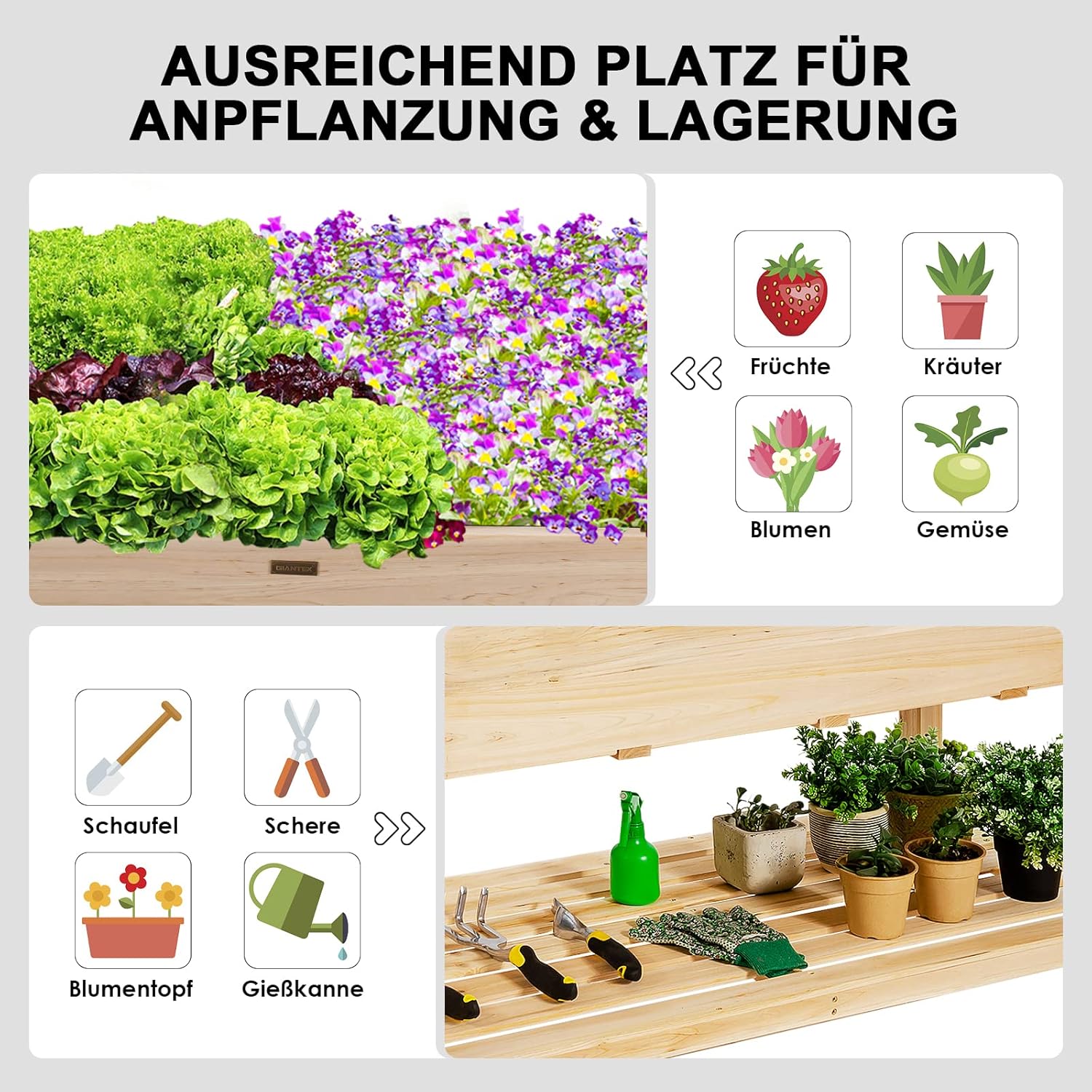 Ausreichend Lagerplatz: Sie können Blumen, Gemüse oder Pflanzen auf Ihrer Terrasse, Ihrem Ihrem Garten pflanzen. Das untere Regal kann zum Platzieren von Pflanzwerkzeugen oder Zubehör verwendet werden.