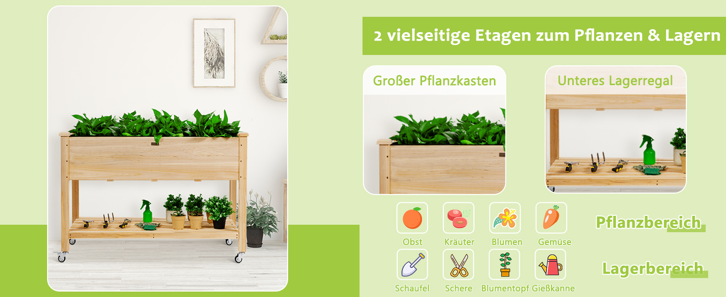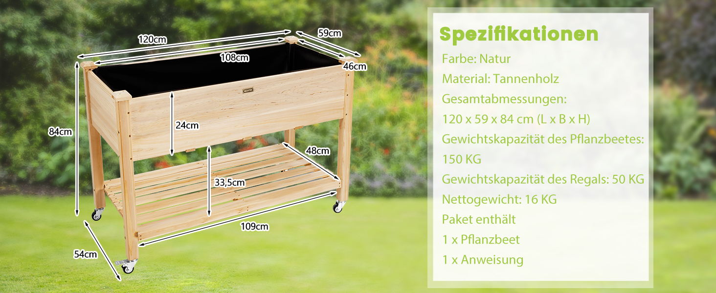 In den Einkaufswagen In den Einkaufswagen In den Einkaufswagen In den Einkaufswagen In den Einkaufswagen Kundenrezensionen 4,6 von 5 Sternen 72 3,8 von 5 Sternen 35 3,3 von 5 Sternen 4 4,8 von 5 Sternen 11 4,2 von 5 Sternen 47 4,4 von 5 Sternen 22 4,4 von 5 Sternen 27 Preis 112,99 €€112,99 82,79 €€82,79 89,99 €€89,99 — — 68,99 €€68,99 72,99 €€72,99 Farbe Natur Dunkelbraun Dunkelgrau Natur Braun/Grau Orange Orange Material Tannenholz Tannenholz Metall Tannenholz PP Tannenholz Tannenholz Gesamtabmessungen 120 x 59 x 84 cm (L x B x H) 71 x 38 x 105 cm (L x B x H) 118 x 118 x 61 cm (L x B x H) 75 x 33 x 181 cm (L × B × H) 40x40x140cm/80x40x140cm(LxWxH) 54,5 x 52 x 180 cm (L x B x H) 78 x 36 x 152 cm (L x B x H) Bruttogewicht 16,8 kg 11 kg 15,5 kg 7.6 kg 4 kg/7 kg 7,3 kg 6,5 kg mit hängendem Dach ✘ ✘ ✘ ✔ ✘ ✘ ✔4 Rollen: Mit 4 Rollen kann unser Pflanzkasten leicht von einem Ort zum anderen bewegt werden. 2 verriegelbare Räder können das Gemüsebeet jederzeit stoppen und die Sicherheit gewährleisten.