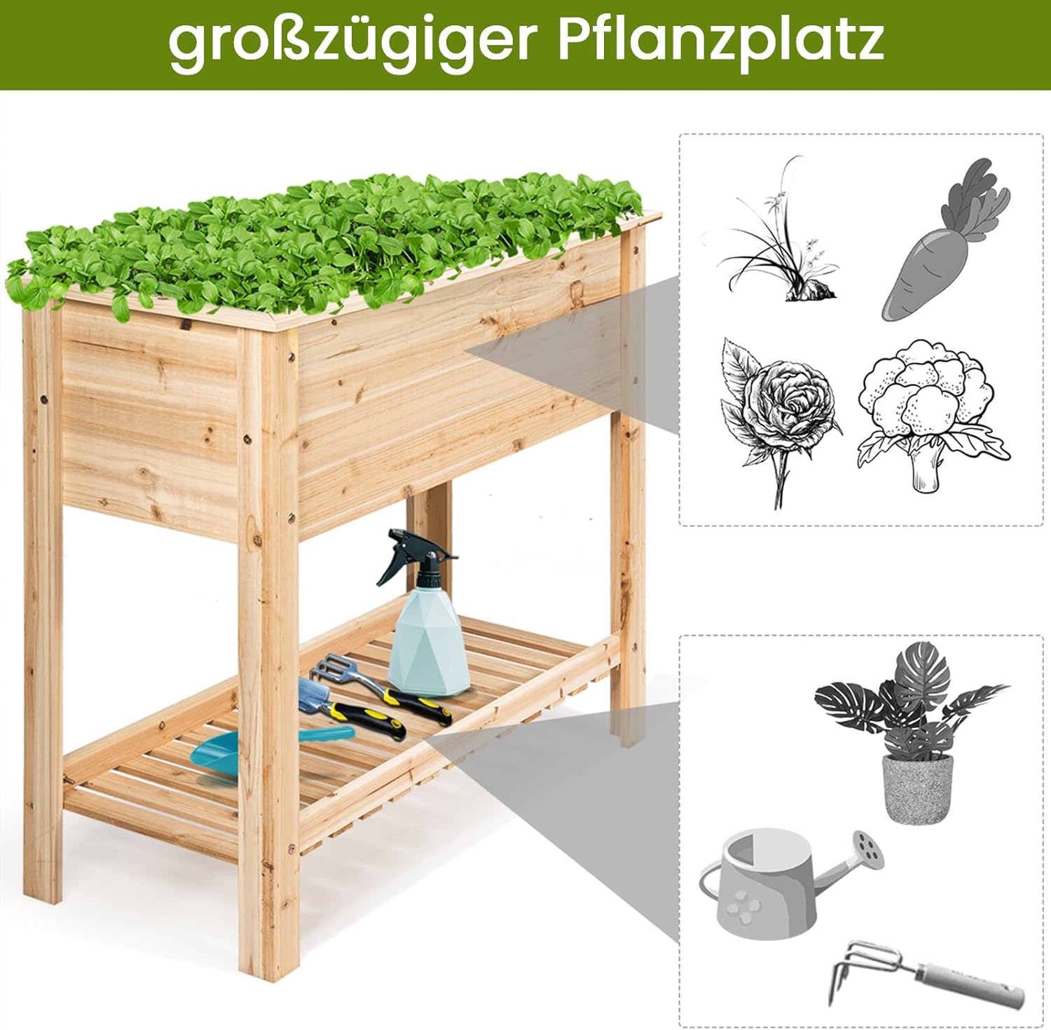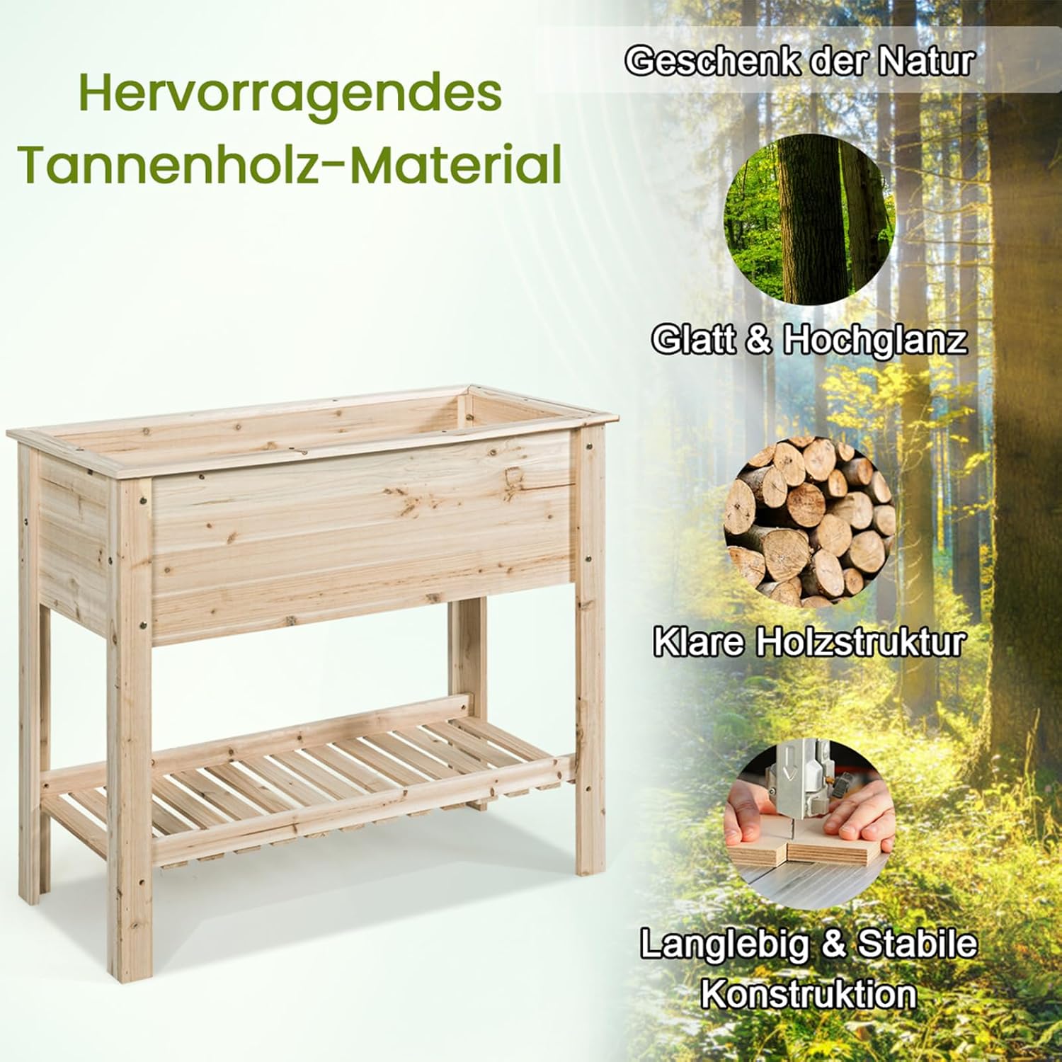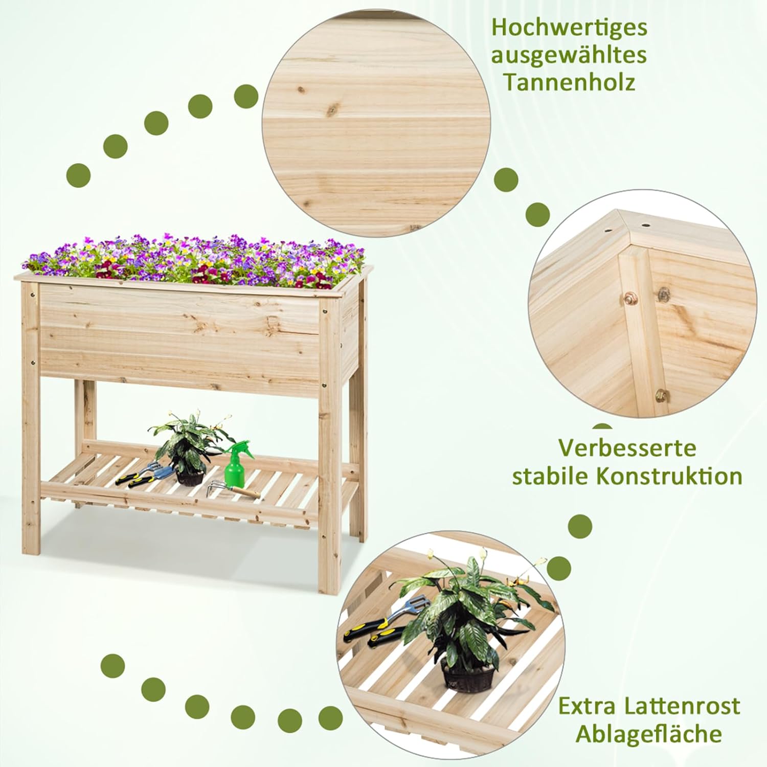 GOPLUS Hochbeet ohne Rollen, Gartenbeet mit Ablage & Abflusslöcher, Pflanzbeet aus Tannenholz für Garten & Terrasse, Natur (ohne Rollen, 92x41x81cm)