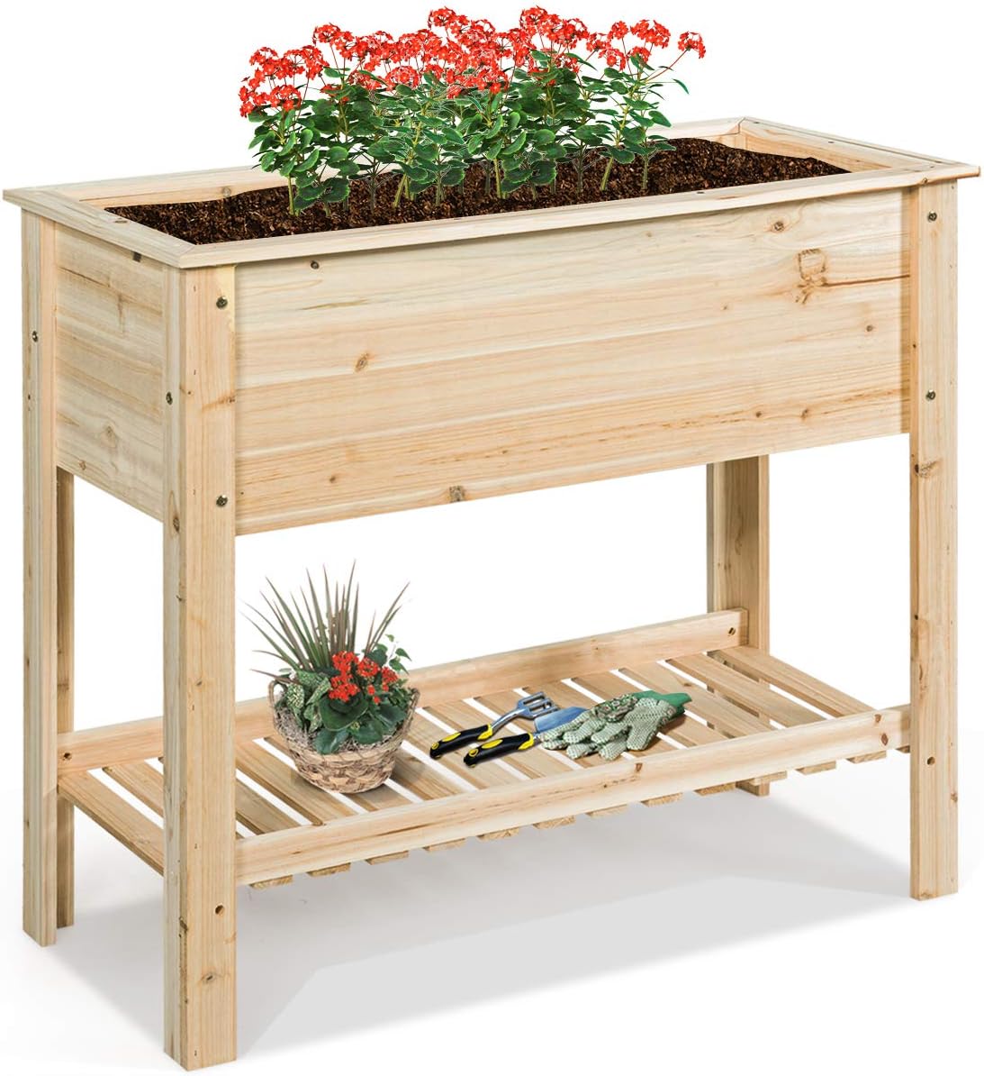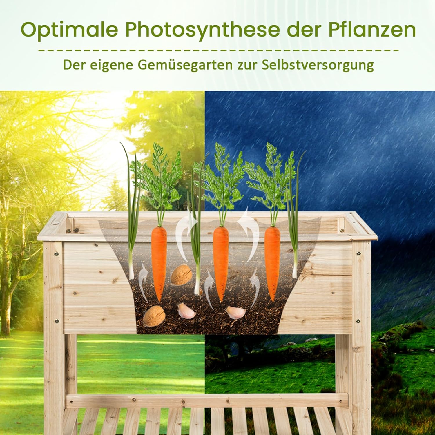 GOPLUS bietet Ihnen hier einen modernen Pflanzkasten im natürlichen Holz-Look. Mit dem Hochbeet schützen Sie Ihre Pflanzen vor Unkraut sowie Schädlingen. Aufgrund der Höhe werden Pflanzen für diese, Hunden oder andere Tiere nur schwer erreichbar. Das Hochbeet besteht aus Tannenholz und hat keinen unangenehmen Geruch. Zusätzlich ist die Arbeitshöhe ergonomisch und rückenschonend und die zusätzliche Ablage bietet Platz für verschiedene Gartenutensilien. Ein hübsches Deko-Element für jeden Garten-das Hochbeet von GOPLUS.