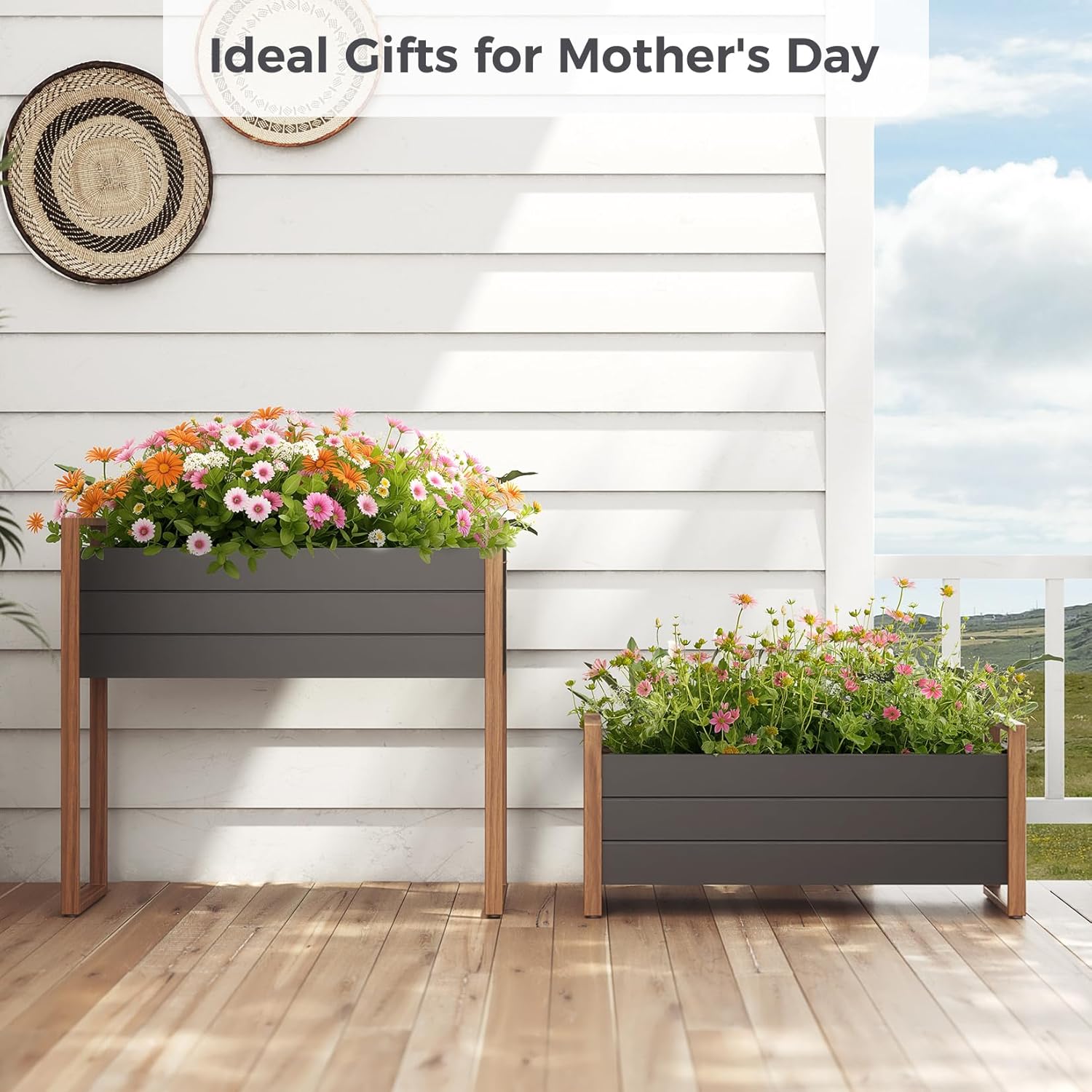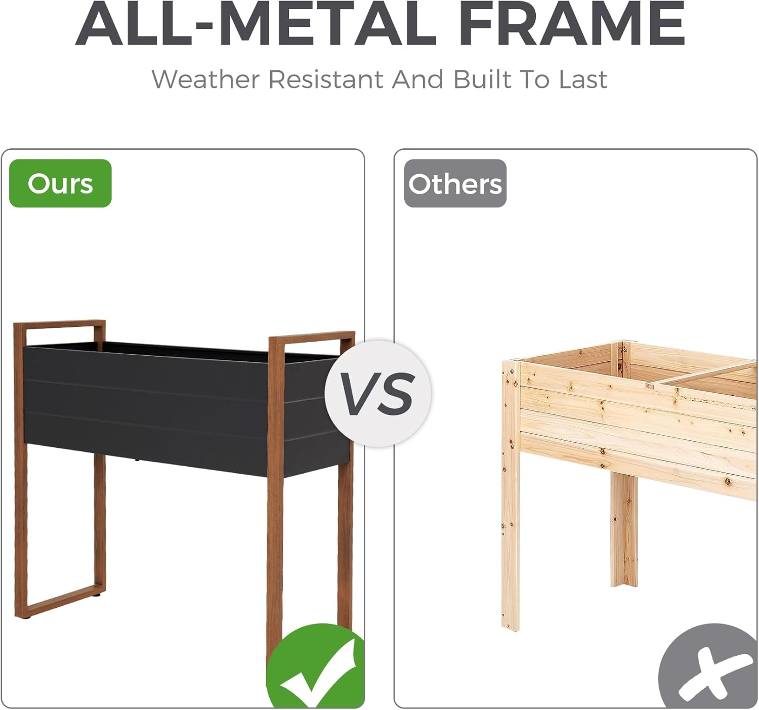 Grand patio Hochbeet Garten, Wetterfest, Metall Pflanzbeet mit Entwässerungslöcher, Blumenkasten für Outdoor, Balkon (100X38X91CM)