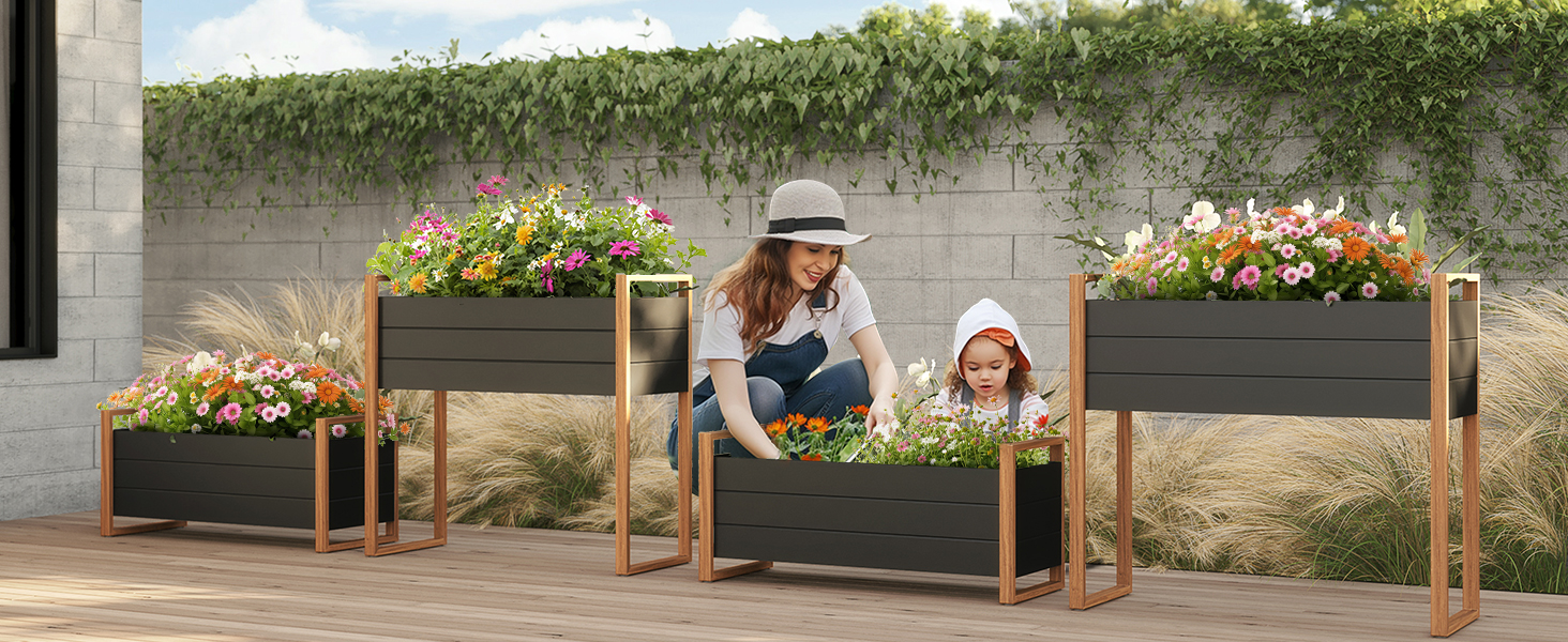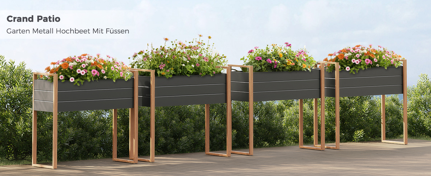 13 Rezensionen für Grand patio Hochbeet Garten, Wetterfest, Metall Pflanzbeet mit Entwässerungslöcher, Blumenkasten für Outdoor, Balkon (100X38X91CM)