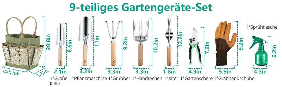 13 Rezensionen für Grenebo Gartenwerkzeug Set,9 Stück Garten Werkzeug mit Gartengeräte Organizer Handtasche, Stabil Gartengeräte Set, Ideale Gartengeschenke für Frauen für Gartenliebhaber geeignet